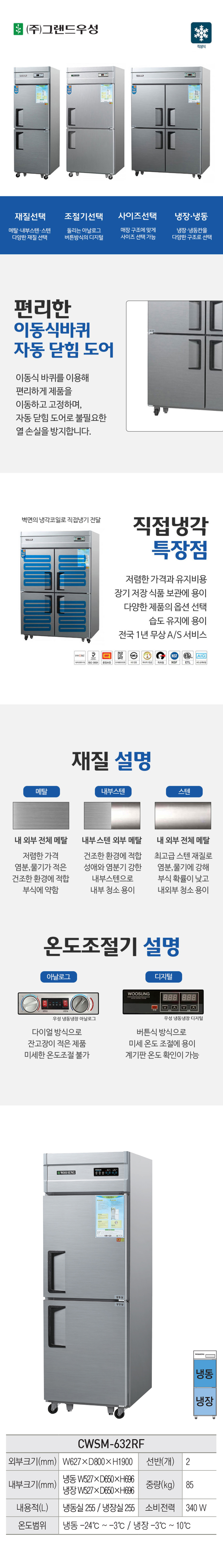 [우성] 직냉식 냉장고+냉동고 510L 내부스텐